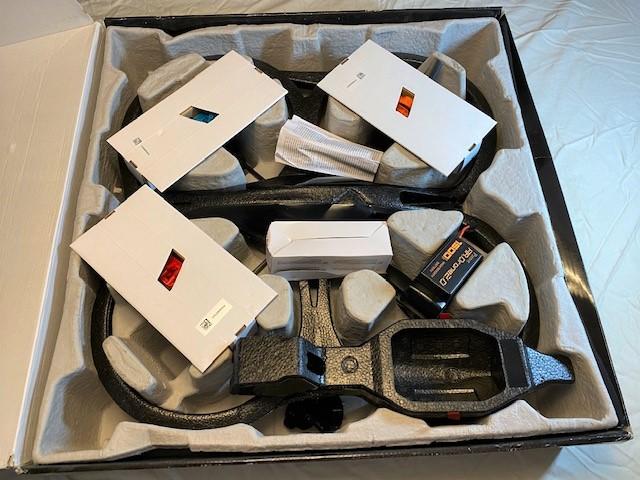 Built in camera. Flies by IOS or Android. Estimated total weight of lot: 10lbs. Measurement: 7"H x 23"L x 23"W