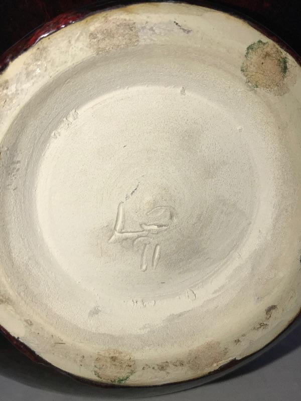 Vase measures approximately 8” tall and 15” from handle to handle. Signed