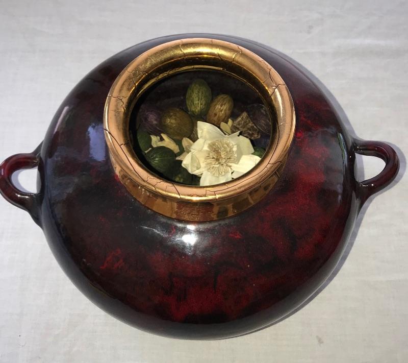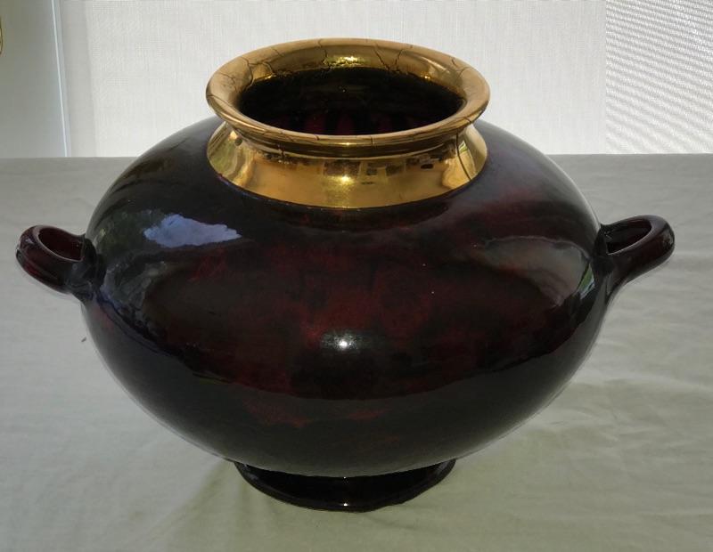 Lot#90 Dark Red Raku  Pottery Vase with Gold Leaf Accent