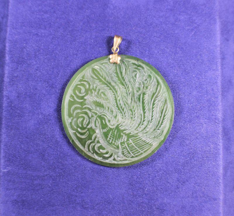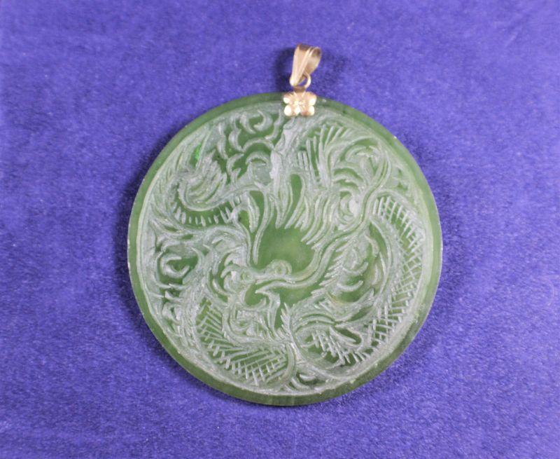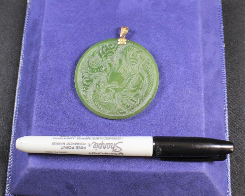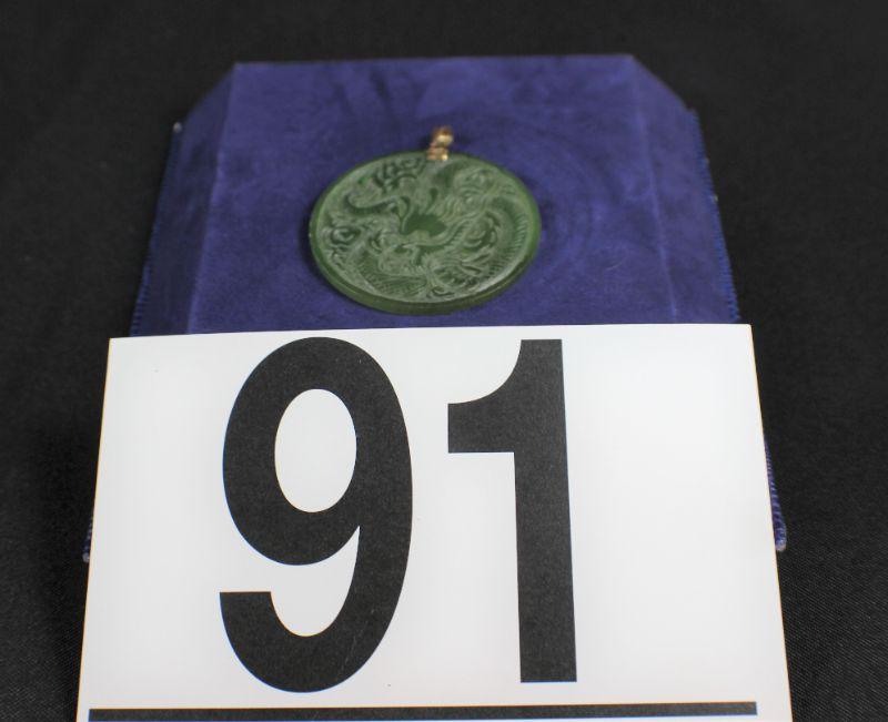 LOT#91J: Believed to be Jade Disk w/ Stamped 14K Gold Pendent