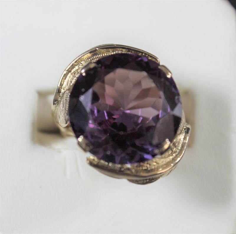 LOT#93: Stamped 14K Gold Believed to be Amethyst Ring 9.5g