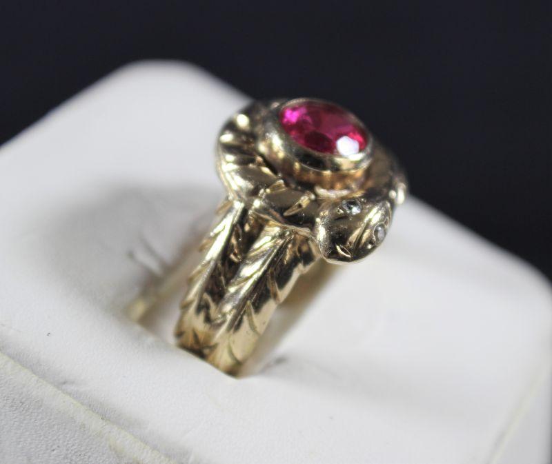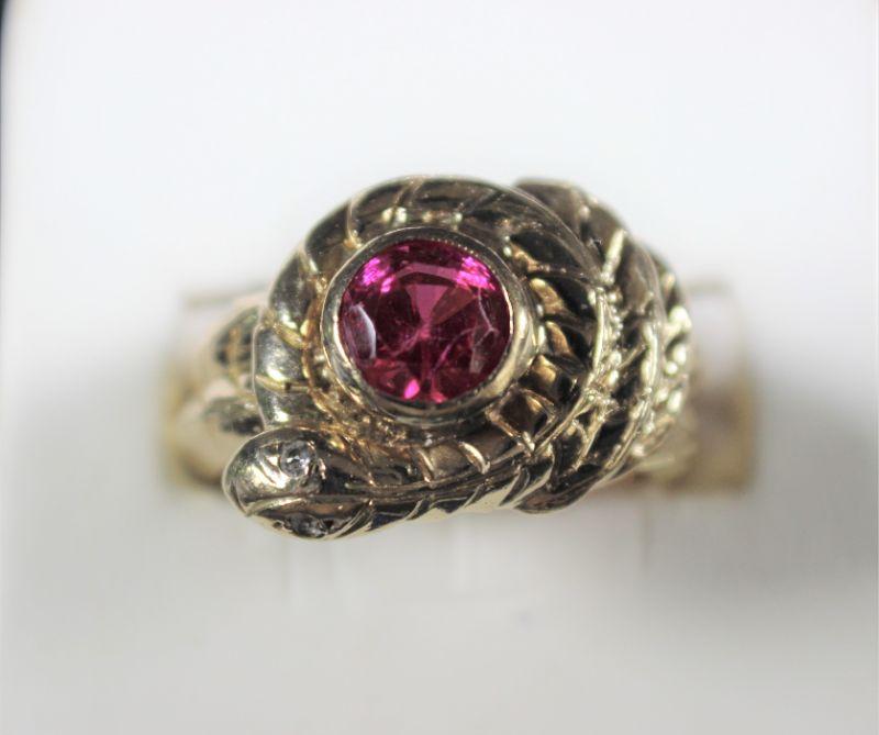 Eyes on snake are clear stones & ruby colored solitaire. Size 9.5
