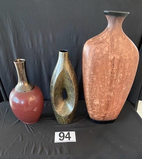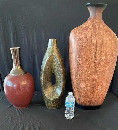 Largest is metal. Other two are ceramic. Measurement: 30"H x 13"W (largest)