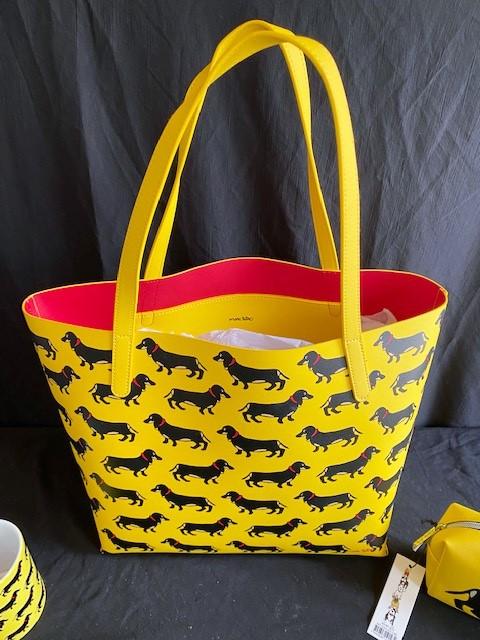 Includes: tote bag, cosmetic bag & coffee mug. Both bags appear to be NOS. Estimated weight of lot: 5lbs. Measurement: 16"L x 12"H x 6"D (tote)