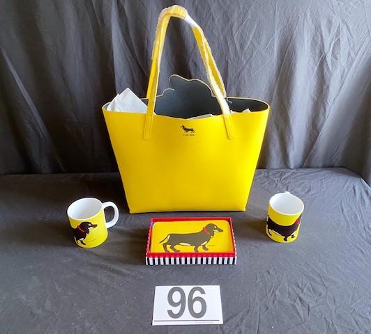Includes: tote bag, wallet & 2 coffee mugs. Tote & wallet appear to be NOS. Estimated weight of lot: 5lbs. Measurement: 16"L x 12"H x 6"D (tote)