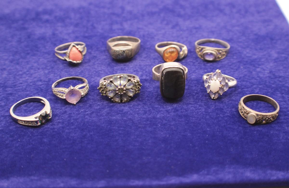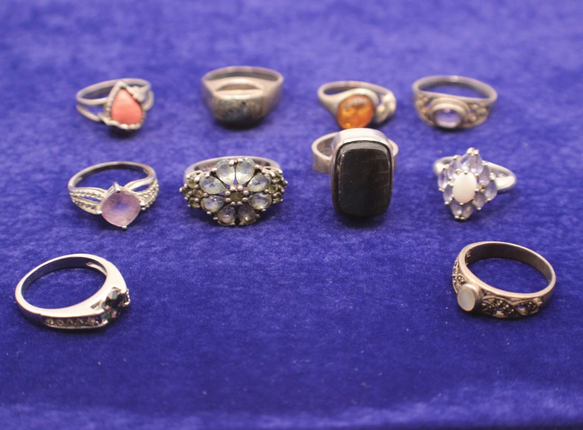 LOT#99: 10 Marked and/or Tested .925 Rings Lot #1 [47.50g]