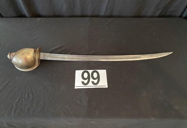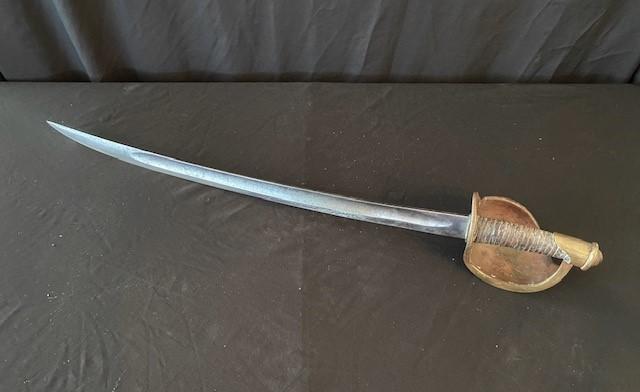 Believed to be 18th century cutlass. Made in Chicopee, Mass. Estimated weight of lot: 5 lbs. Measurement: Sword: 32"L Guard: 5"W x 5"L