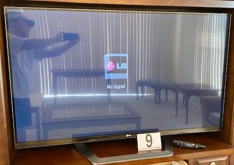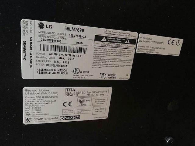 Part# 55LM7600. Comes with remote, manual & LG Cinema 3D glasses (2 clip-on, 1 child size & 9 adult). TV powers on at time of cataloging.