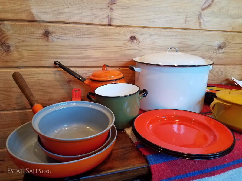 Lot-A16 15 Pc Mixed Enamel Cookware Assortment Lot