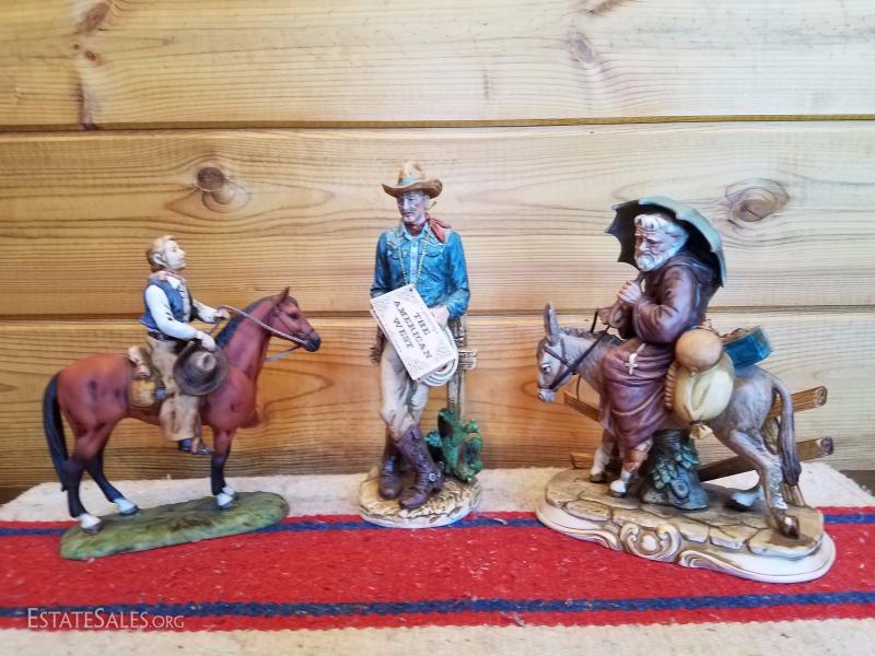 Lot-A17 3 Pc Western American Porcelain Figurines Collection