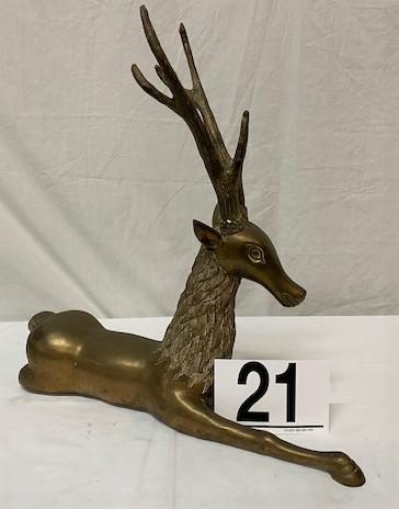 LOT#A21: Heavy Brass Sitting Reindeer