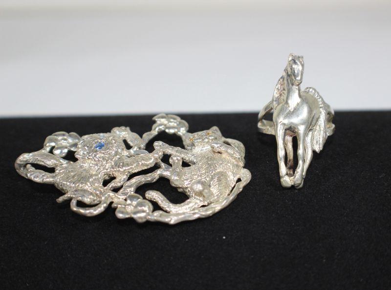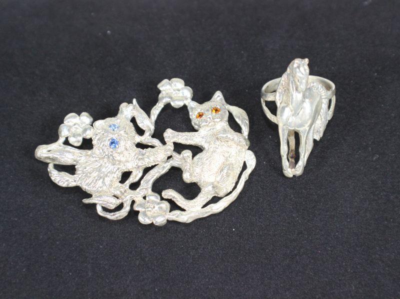 Show Horse Ring size 8. Precious Pets Kitten pendent signed by Loni. Total weight 30g. Measurements: 2 1/2"L x 1 1/2" (kitten)