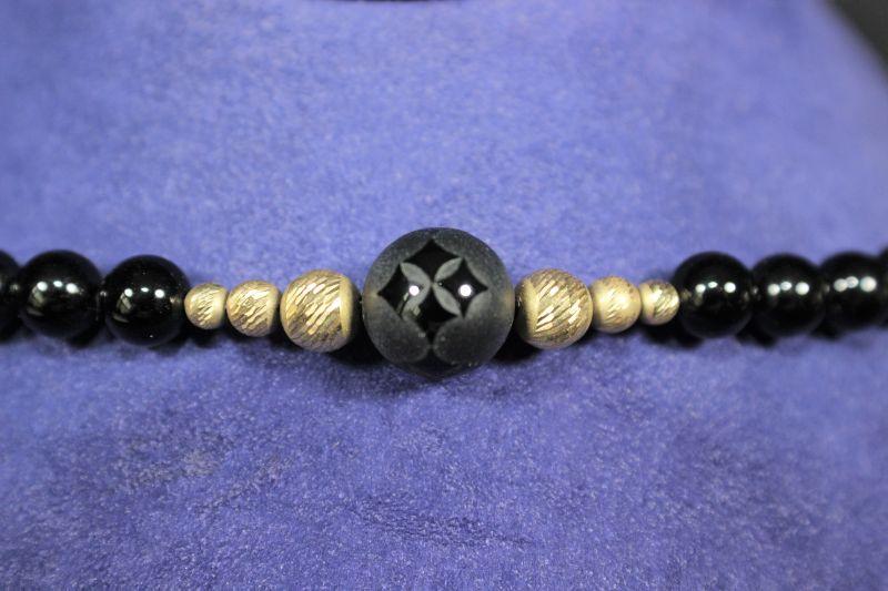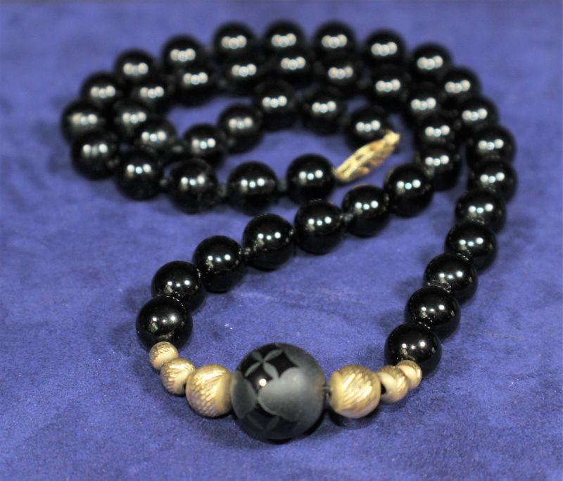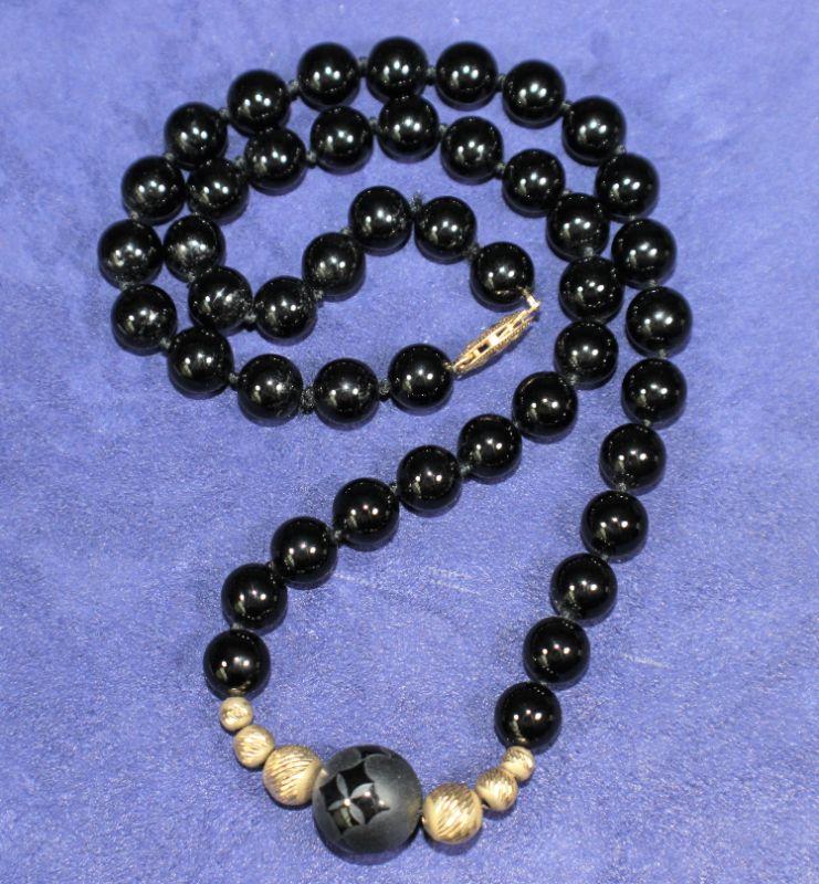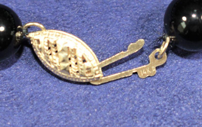 LOT#A25: Black & Gold Beaded Ladies Necklace with Stamped 14K Gold Clasp