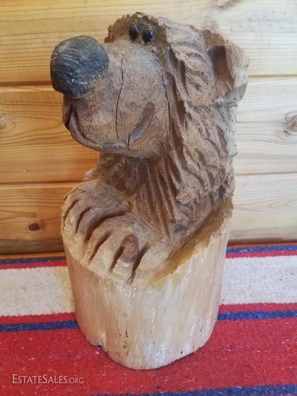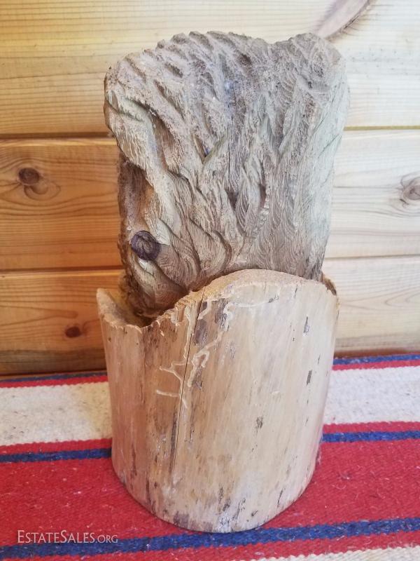 Lot-A25 Decorative Wood Carved Bear Stump #2