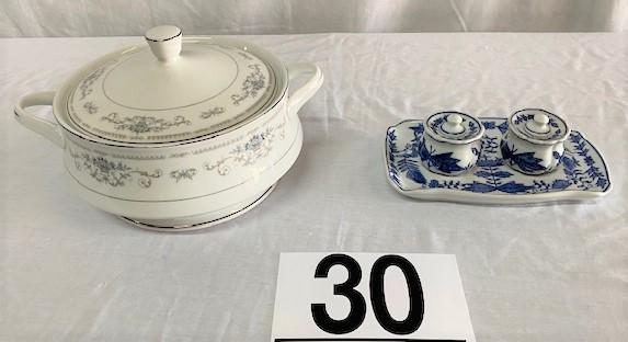 Vintage Wade Porcelain Casserole & Delft style spice pots. Measurement: (Casserole) 10 1/2"diameter x 6"H