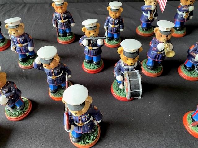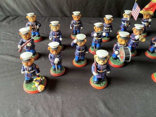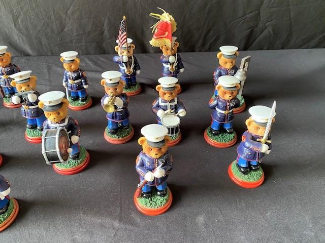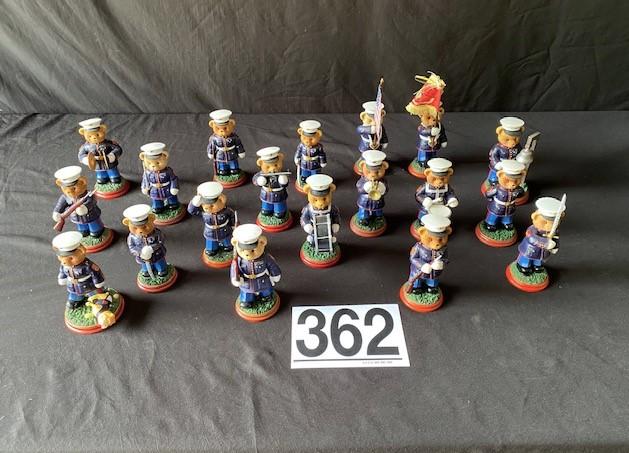 Band & ceremonial figure. Marine bulldog is cracked. Estimated weight of lot: 20lbs. Measurement: 7"H x 16" x 10"W