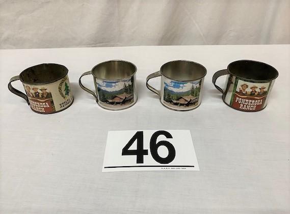 LOT#A46: 4 Bonanza/Pondarosa Tin Litho Cups
