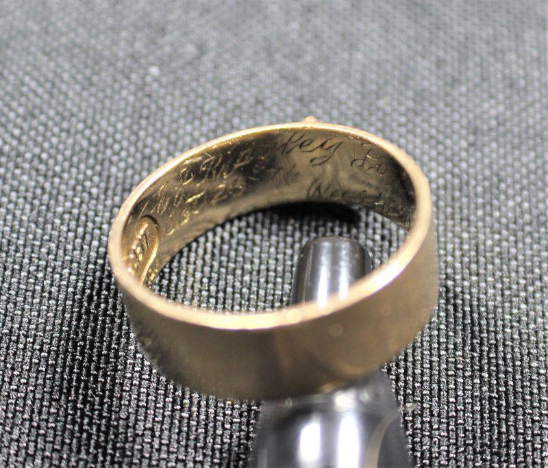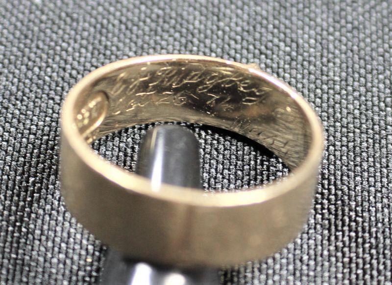 Size: 10. Inscribed on inner band: Virtus Junxit Mors Non Separabit. Hand-etched inscription: JJ Ridgely Oct 26 1974, Wash D.C.