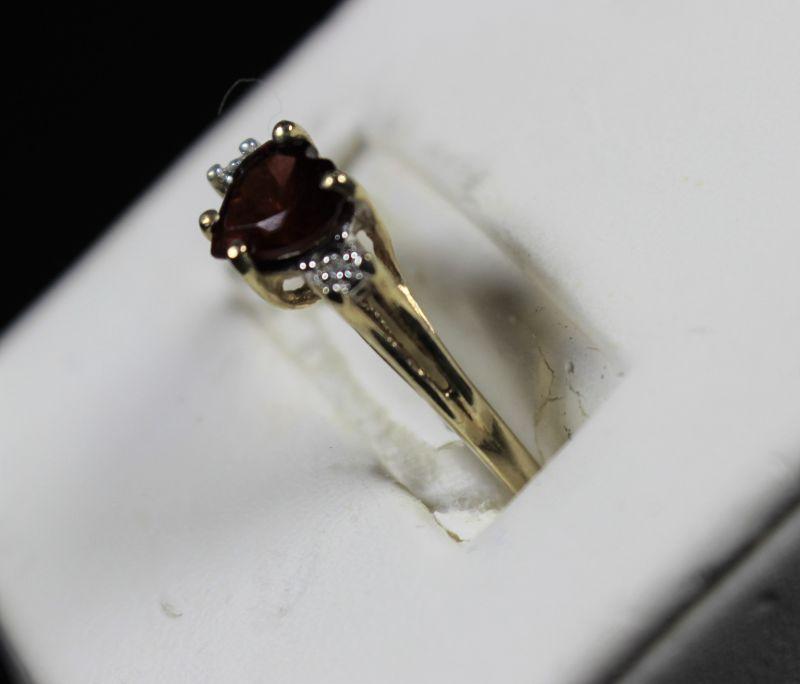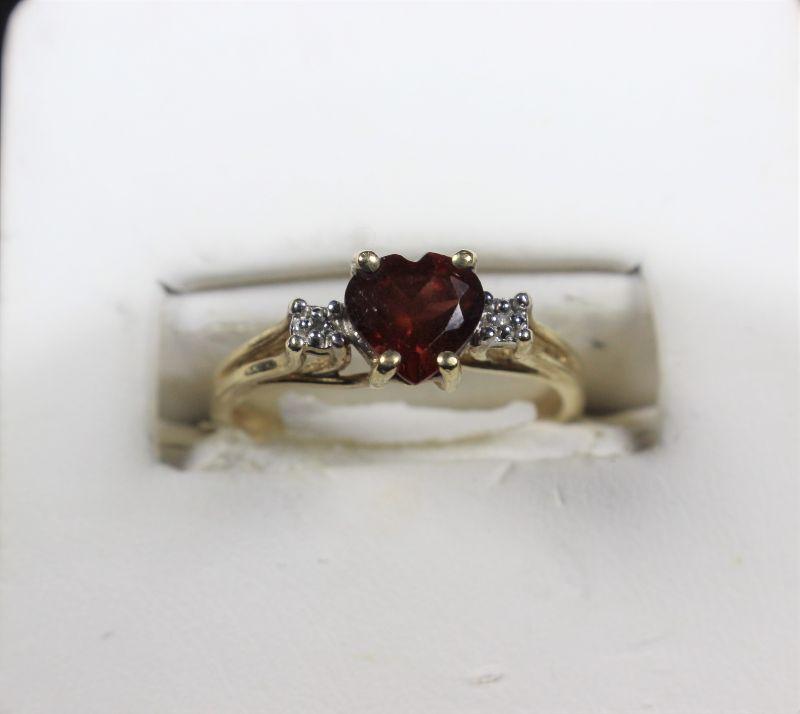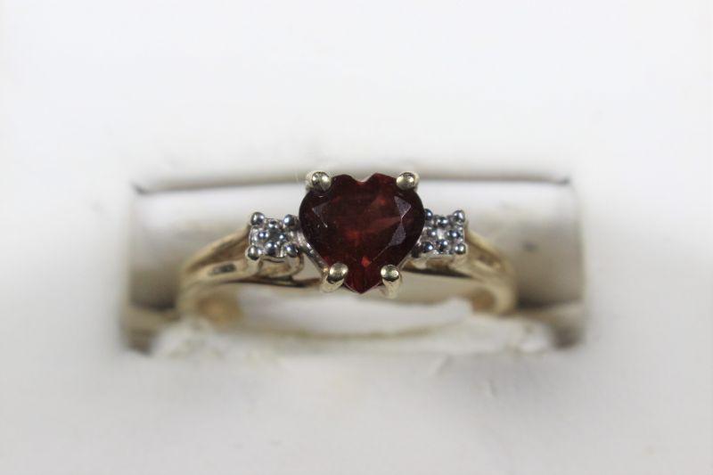 LOT#A64: Stamped 10K Gold Believed to Heart-Shaped Garnet Ring 1.8g