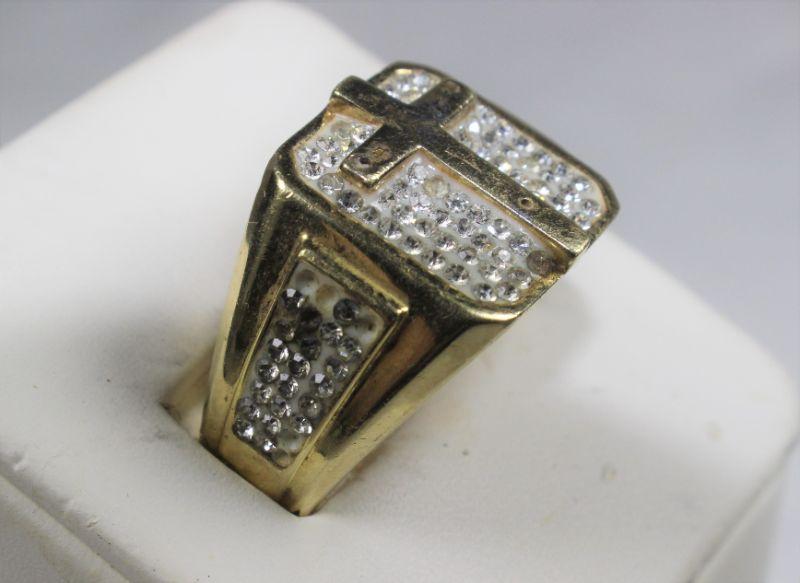 LOT#A87: Marked .925 Crucifix Men's Ring with Gold Wash
