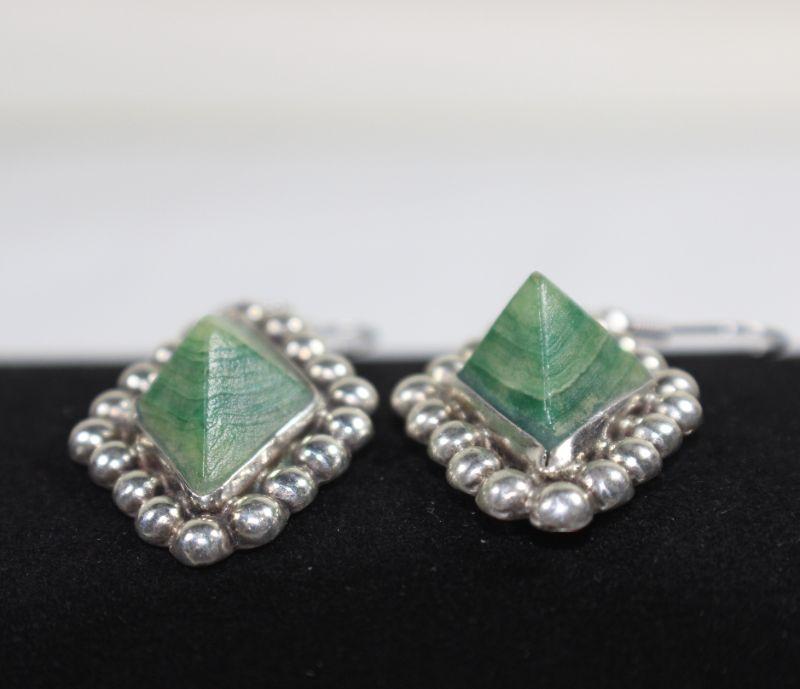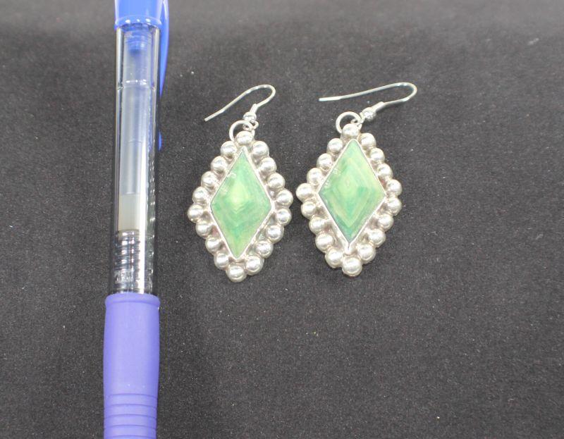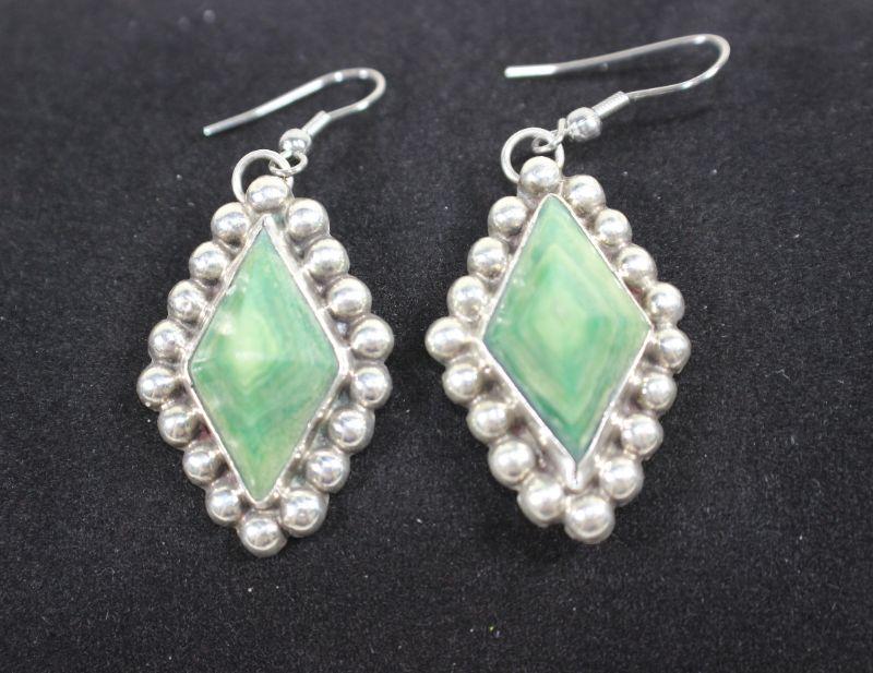 LOT#A88: Malachite & Mexican Silver Earrings