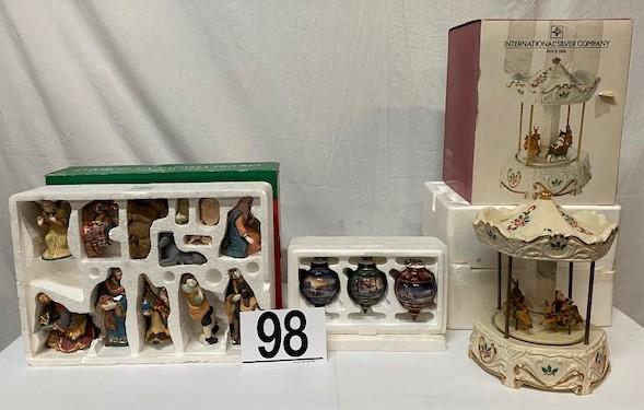 International Silver Company Santa & Sleigh Musical Carousel, Kurt S. Abler Porcelain Nativity & Terry Redlin Christmas Ornaments pack of 3.