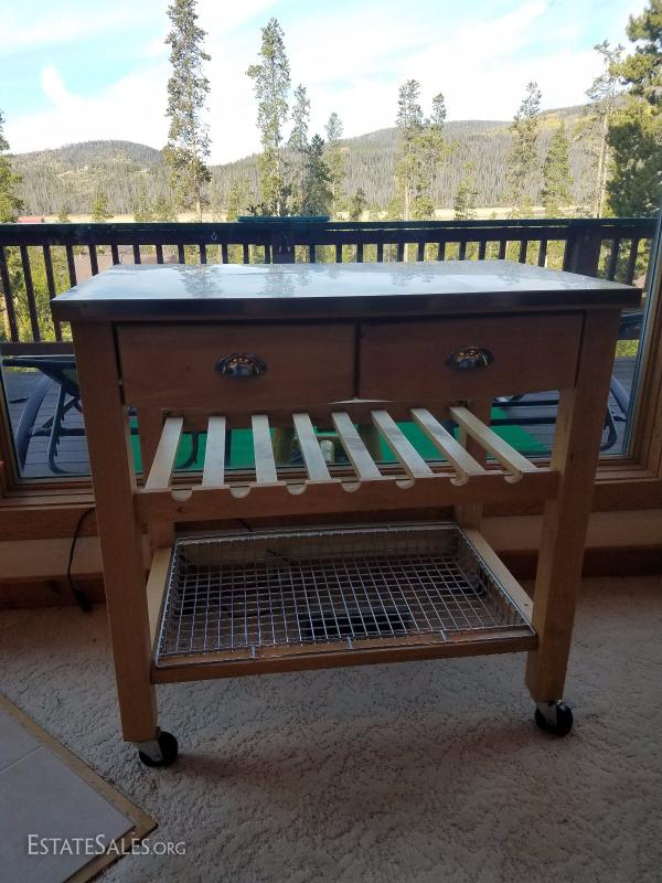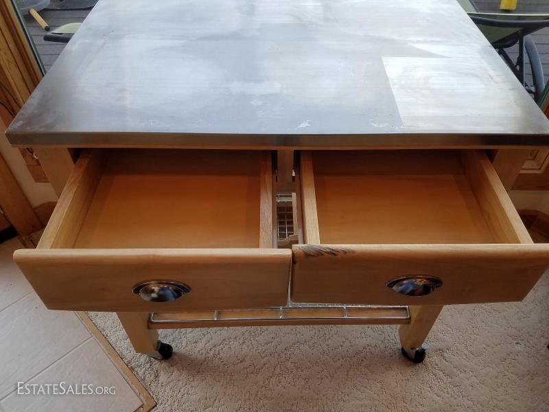 Lot-B2 2 Drawer Rolling Stainless Steel Top Kitchen Island Bar Utility Cart