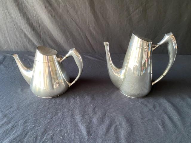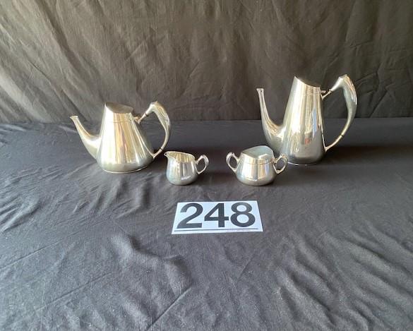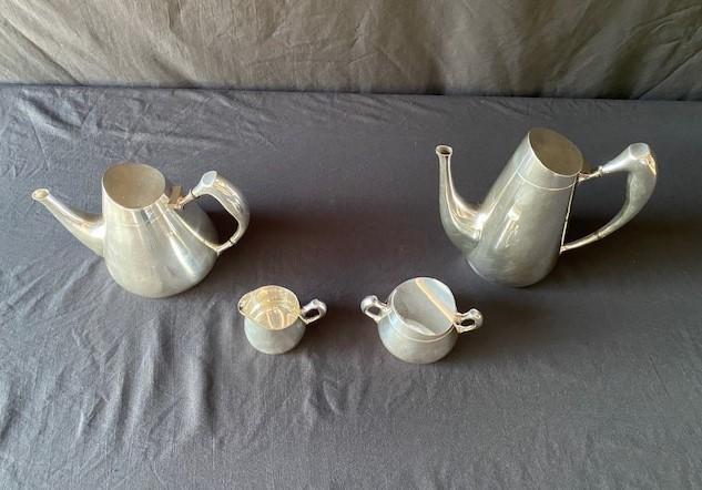 4 pieces. Complete. Silverplate. Mid-century style. Estimated weight of lot: 5lbs. Measurement: 8"H x 8"W (tallest)