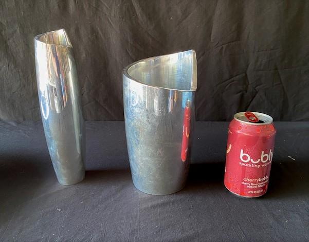 Two spiral vases and one bowl. Estimated weight of lot: 15lbs. Measurement: 10" (tallest) | 10" (widest)