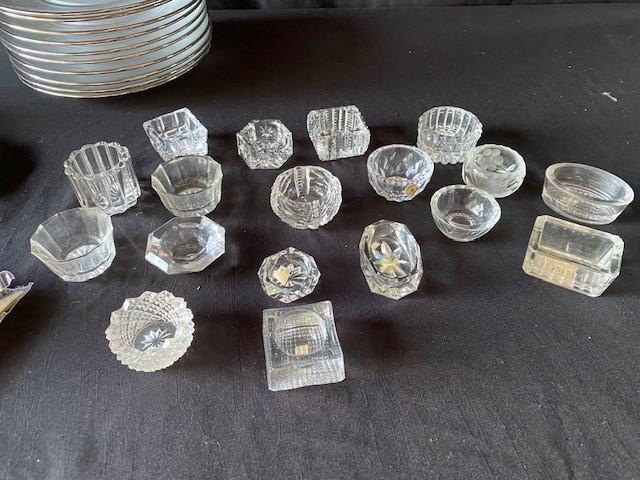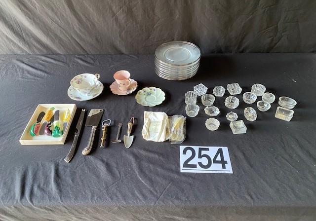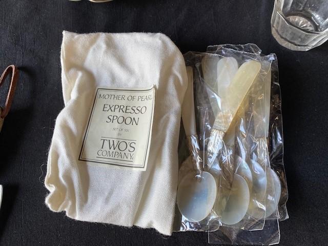 Includes: teacups, spreaders, salts & plates. NOS espresso spoons.