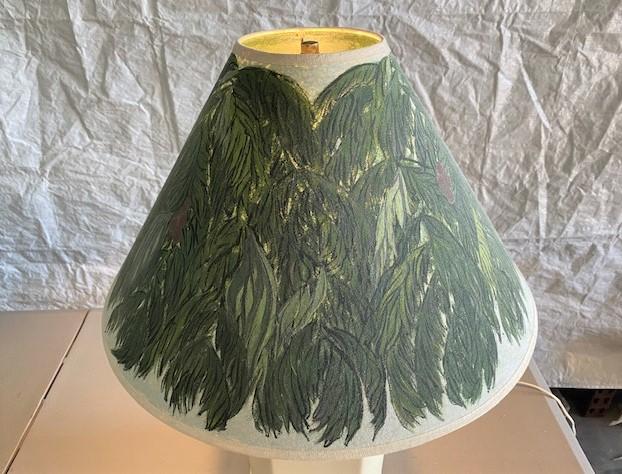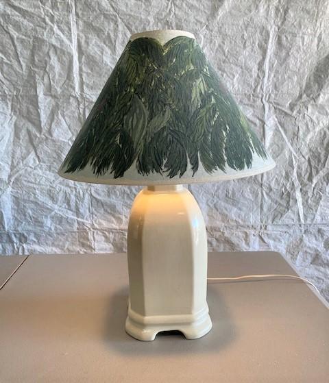 Working at time of cataloging. Ceramic lamp. Estimated weight of lot: 10lbs. Measurement: 25"H x 19"W (with shade)