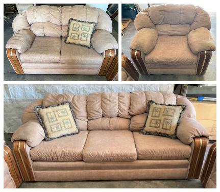 LOT#B290: Charm Furniture - Microfiber Couch, Loveseat & Chair