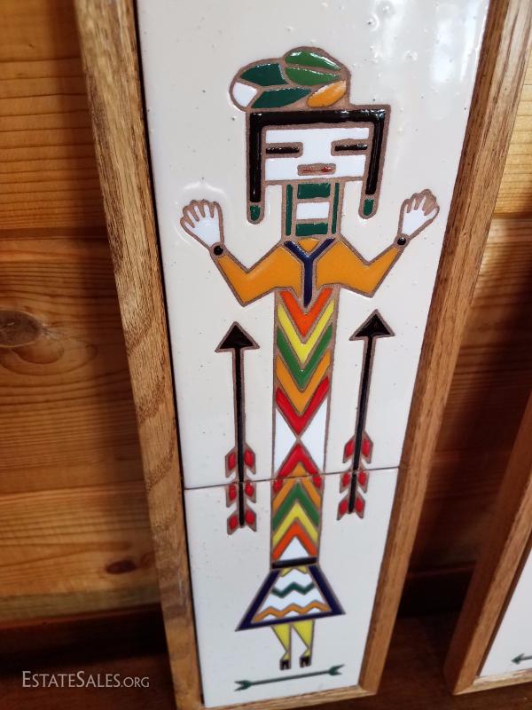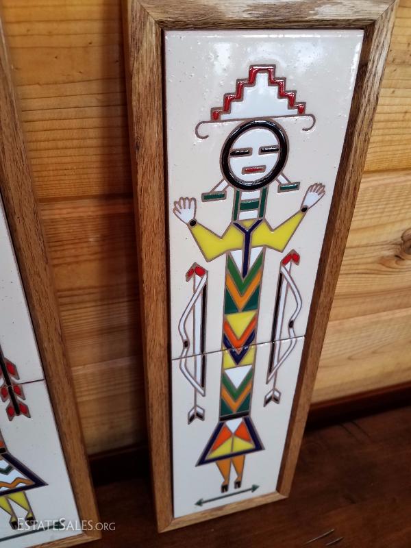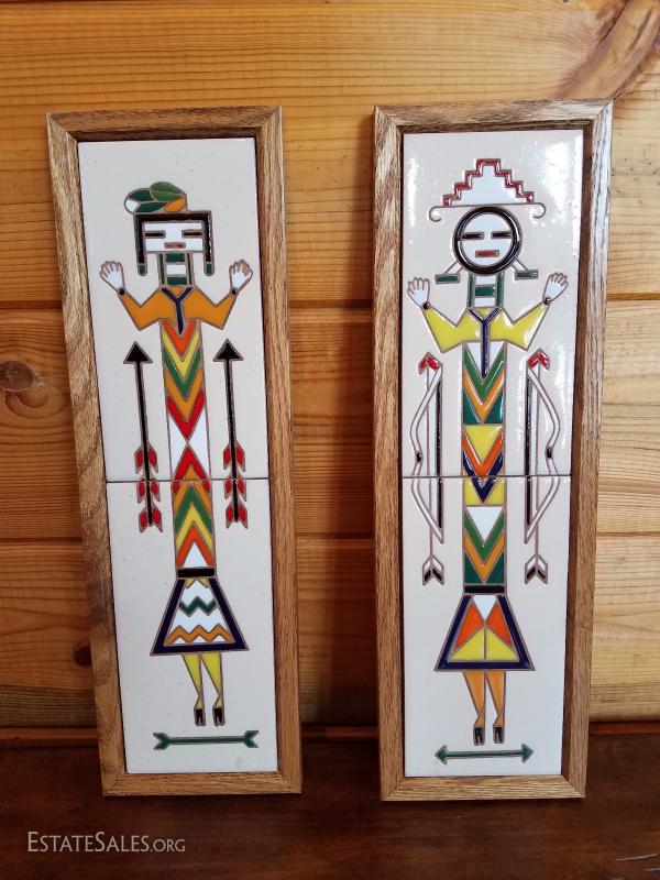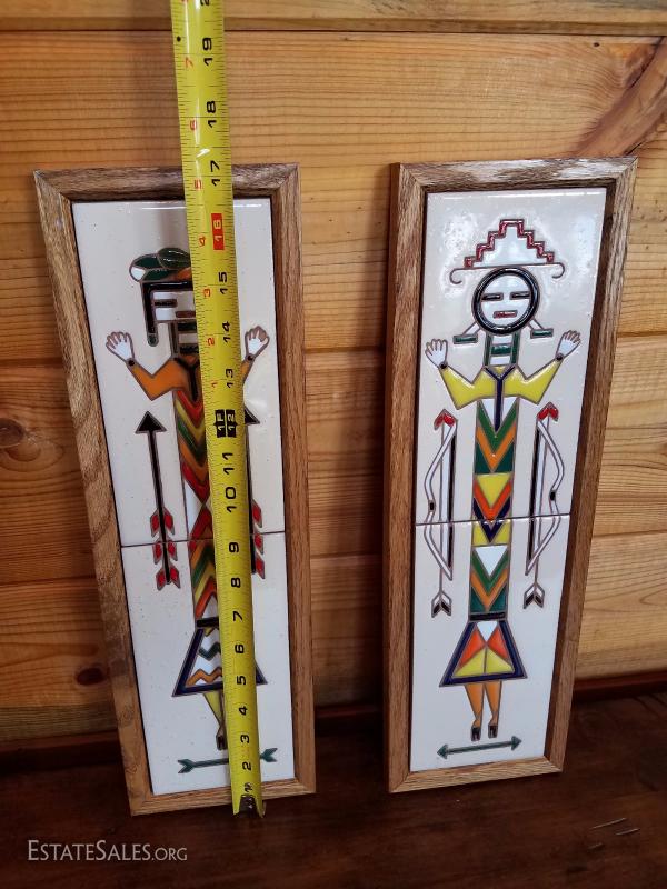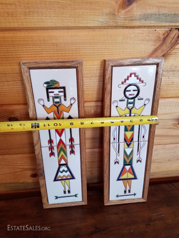 Lot-B33 Pair of Framed Southwestern Yei Tile Art Wall Hanging Décor
