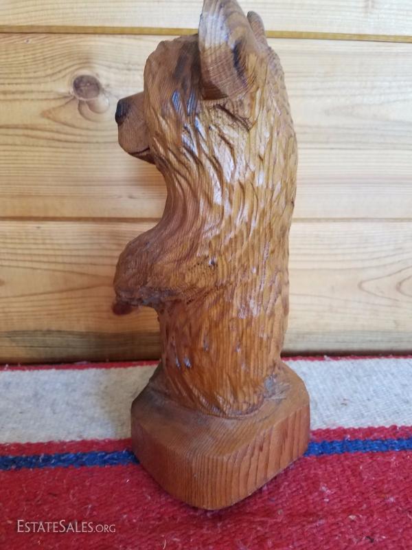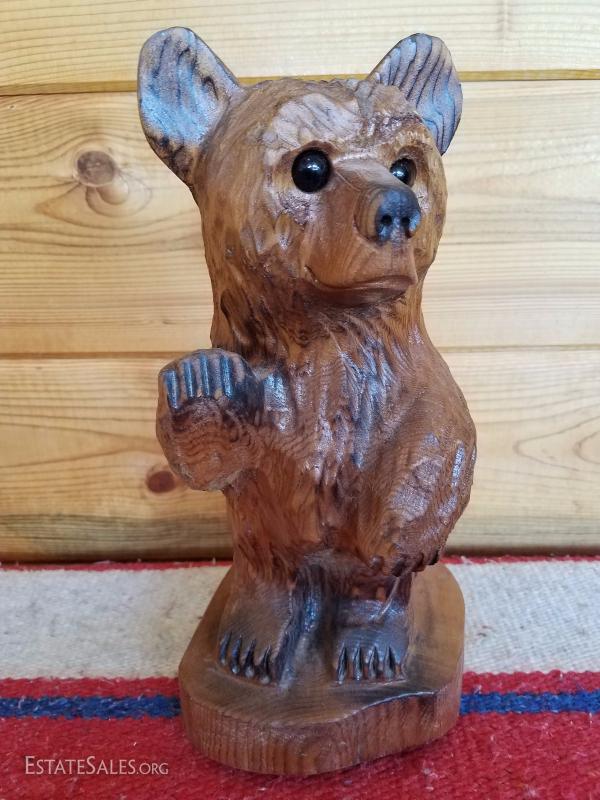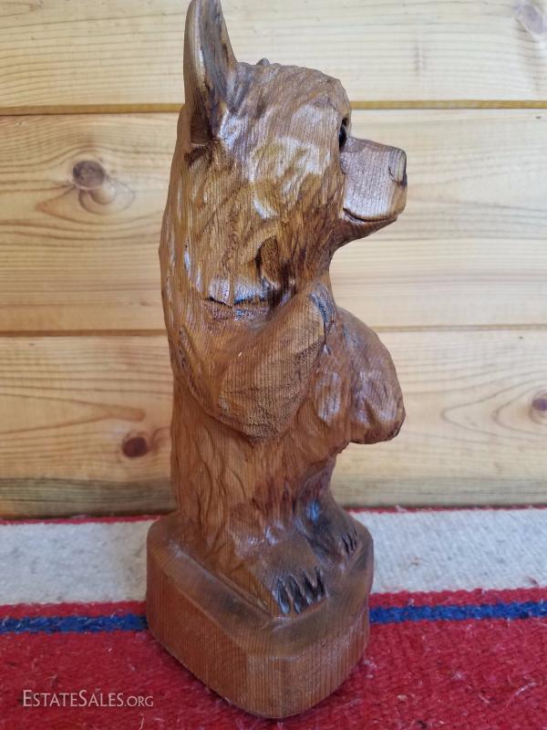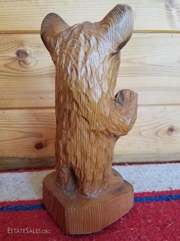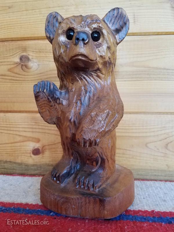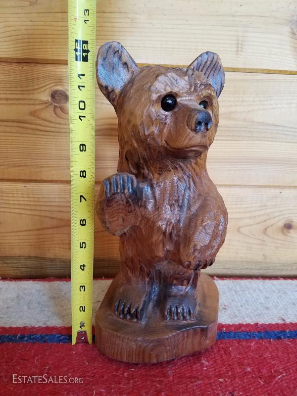 Lot-B37 Small Hand Carved Wooden Bear Stump Statue