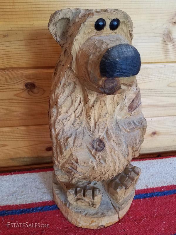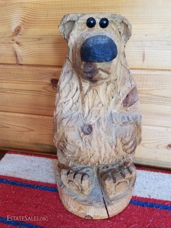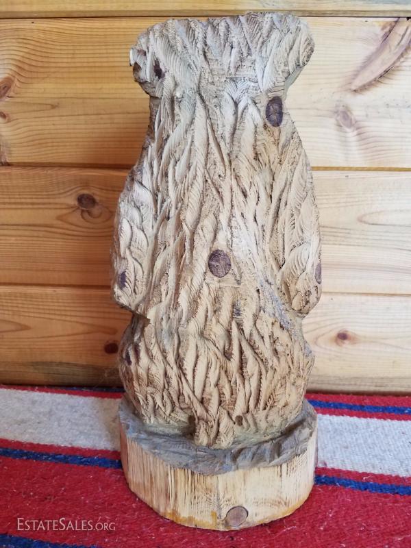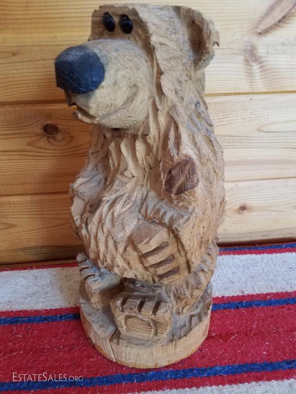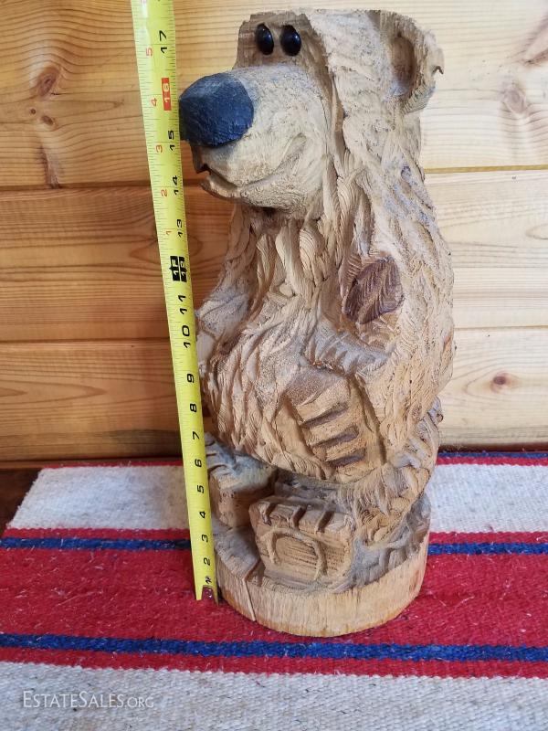 Lot-B38 Full Body Wooden Carved Bear Stump Decor