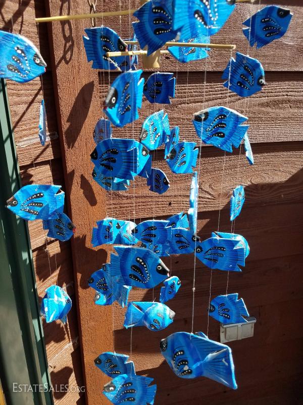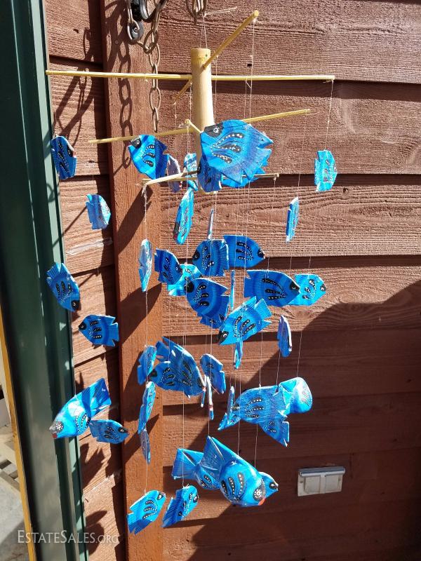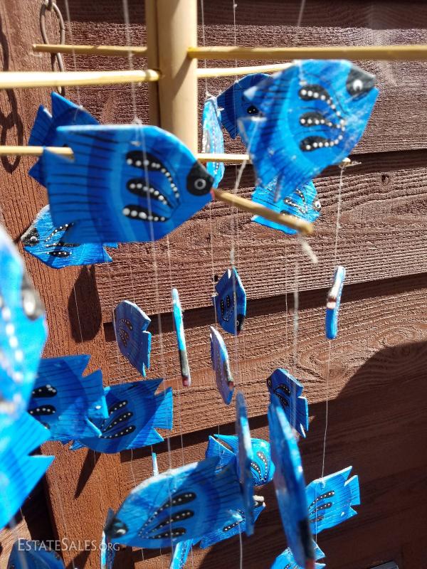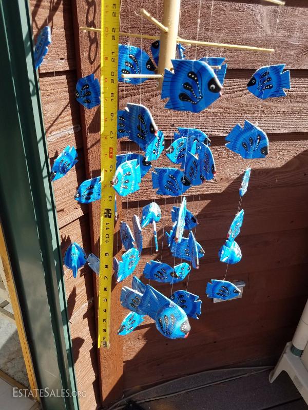 Lot-B42 Blue Wooden Painted Fish Wind Chime
