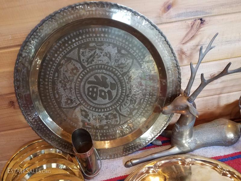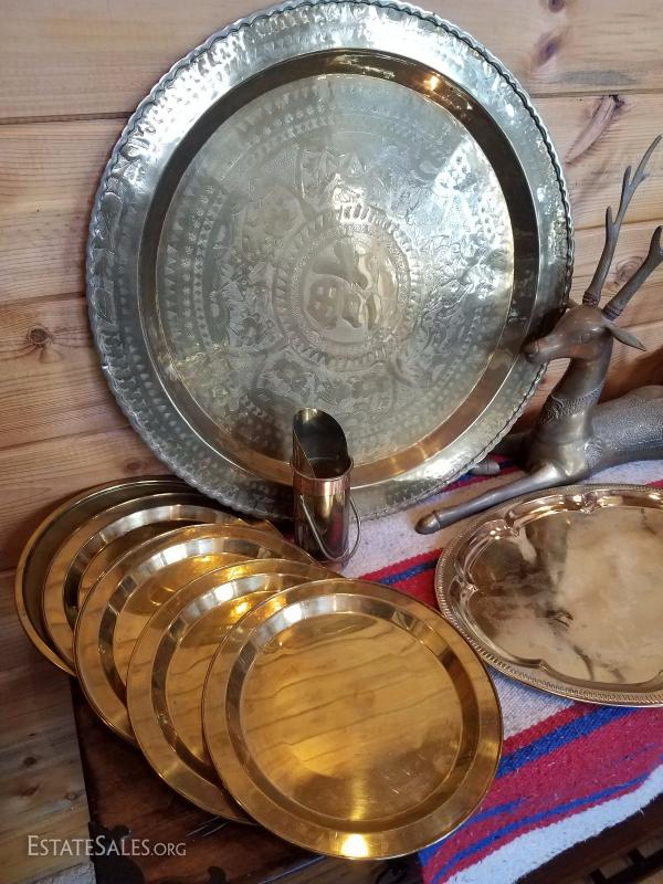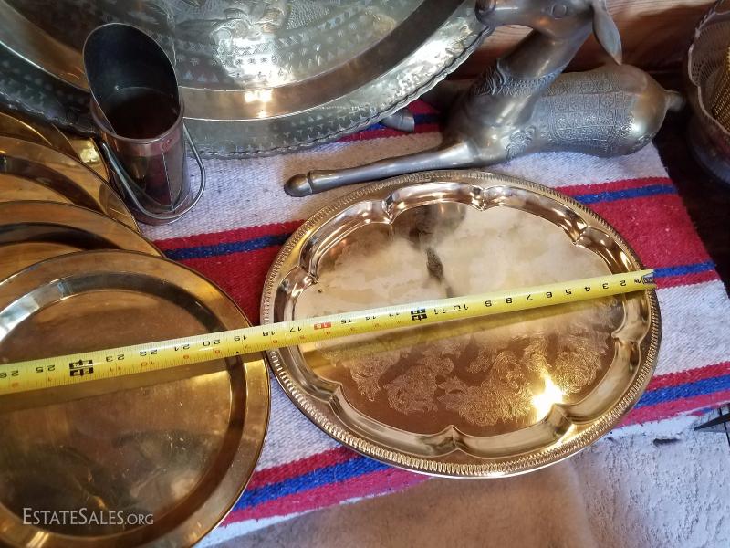 Lot-B59 12 Pc Brass Platter Décor Various Mixed Lot