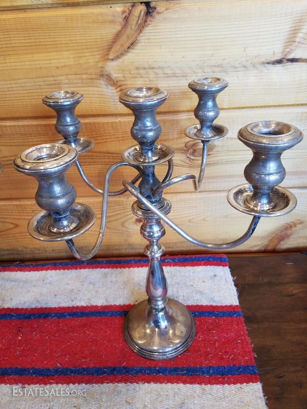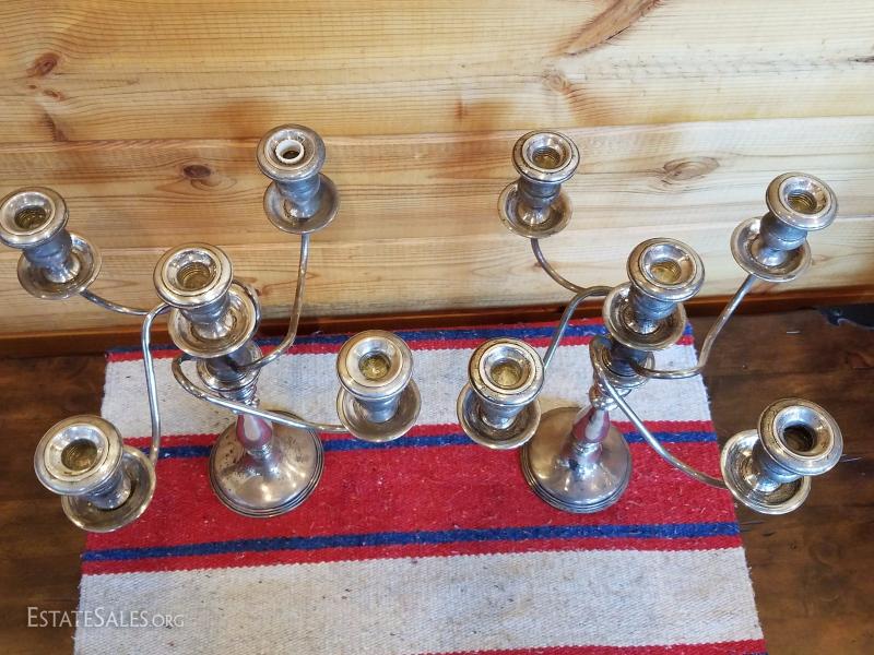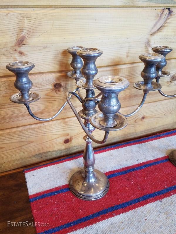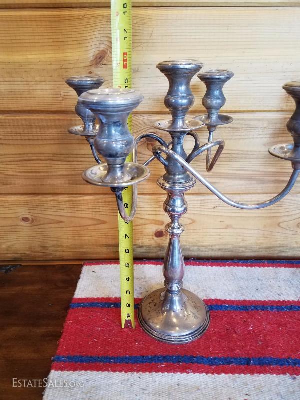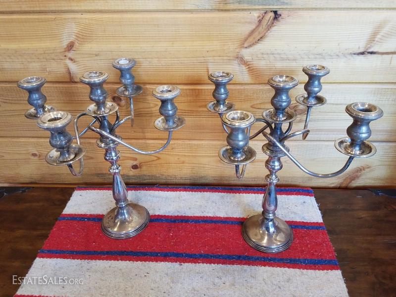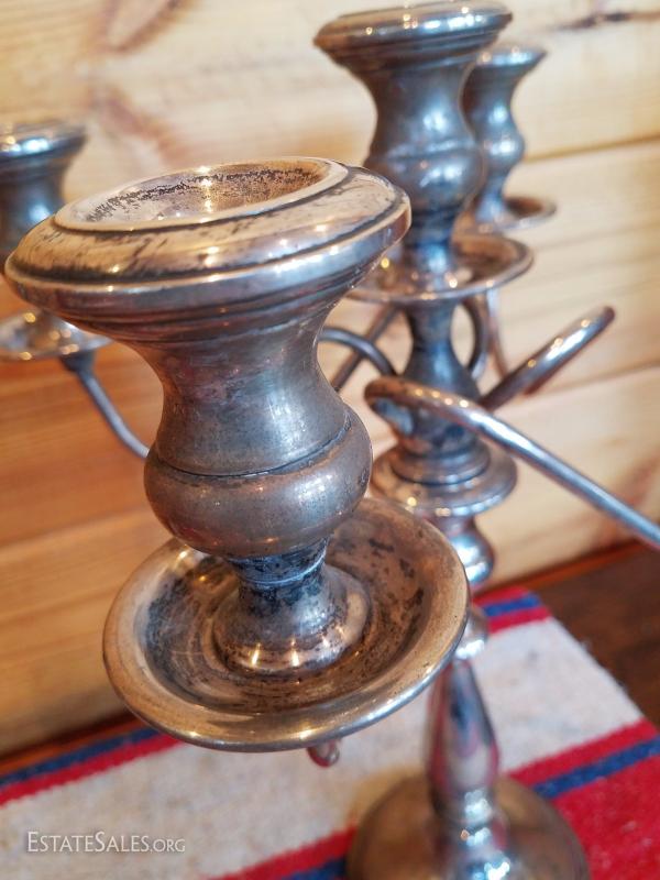 Lot-B6 Pair of 2 Pc 5 Candle Sterling Weighted Empire 397 Candelabras