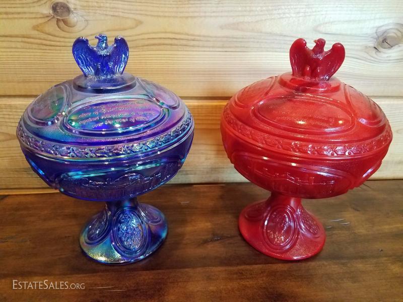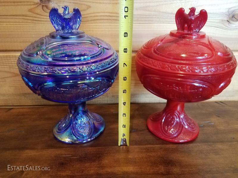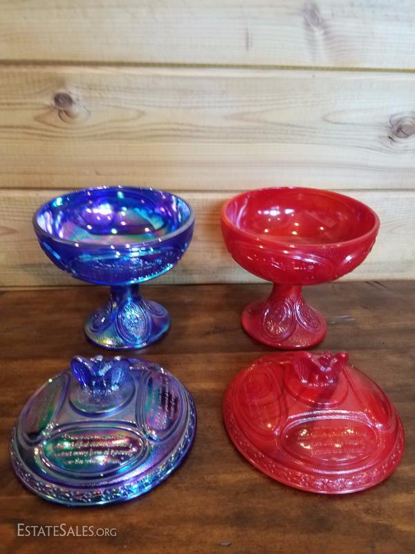 Lot-B63 Lot of 2 Fenton Glassware Candy Dish Bicentenial Bowls