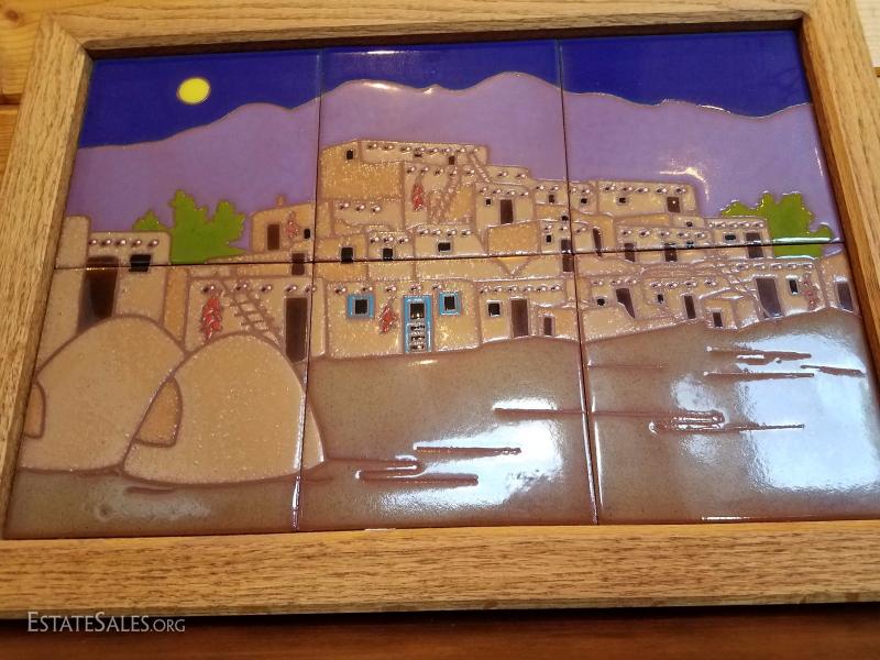 Lot-B67 6 Tile Tecolote Southwest Art of Santa Fe Handpainted Design Dick Jupp