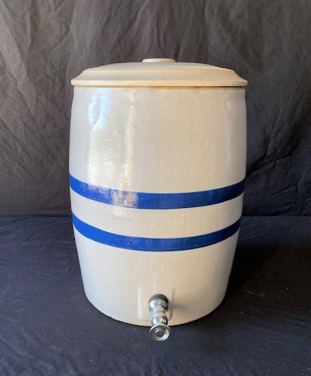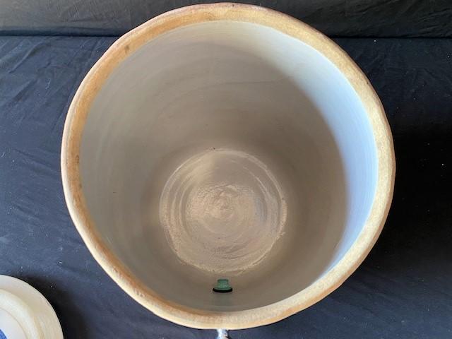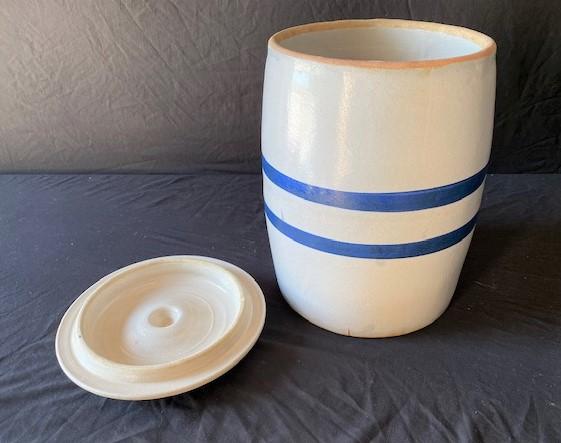 With lid. One light crack on inside. Estimated weight of lot: 25lbs. Measurement: 16"H x 11"diameter
