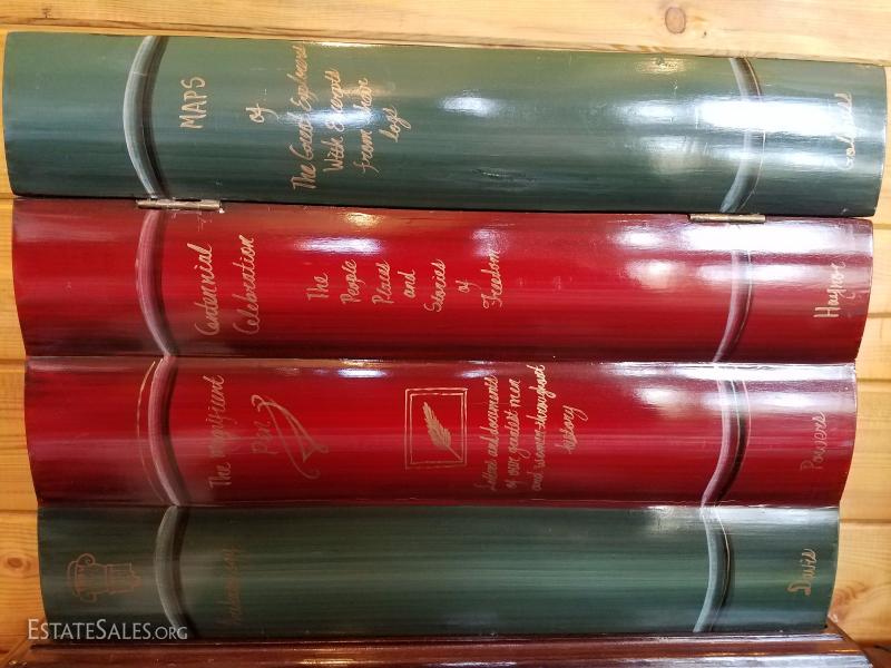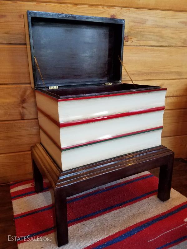 Lot-B9 Wooden Explorers Hidden Chest Book Décor w/ Stand