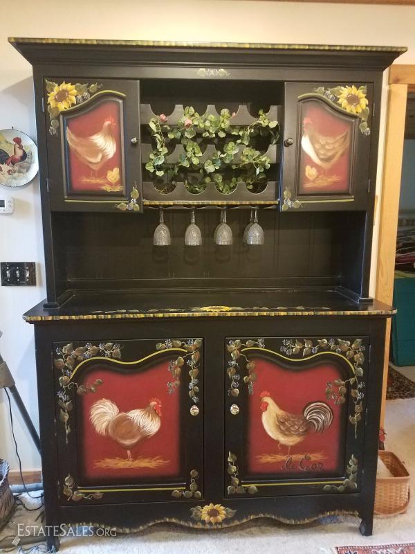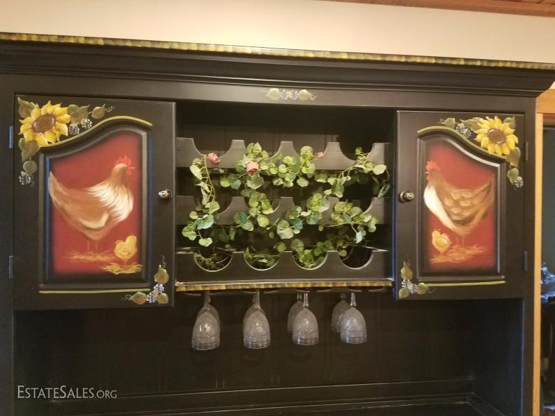 Beautiful, hand painted, wine hutch. Excellent country decor.