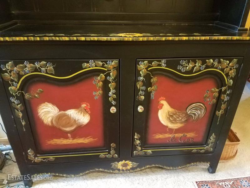 Lot-C1 2 Pc Le Coq Hand Painted Wine Bar Hutch Country Decor 82.5x60x18