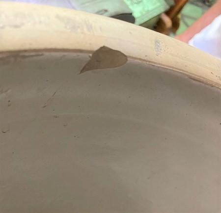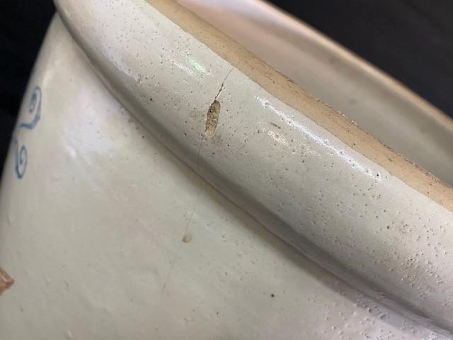 Hairline crack (as pictured). Measurement: 17 1/2"H x 17" diameter.