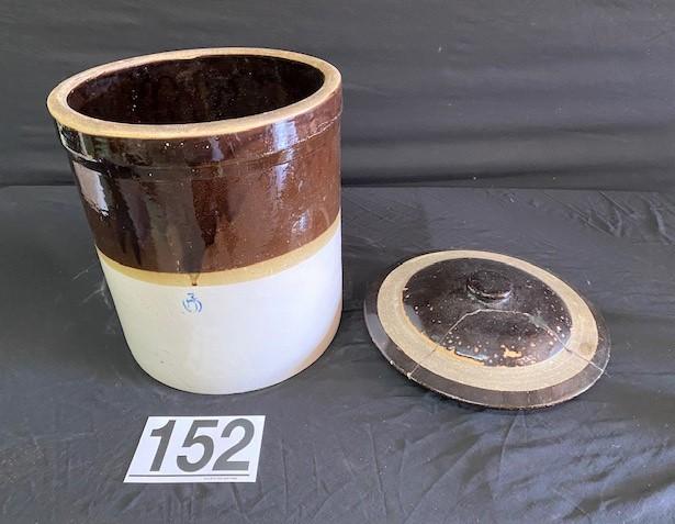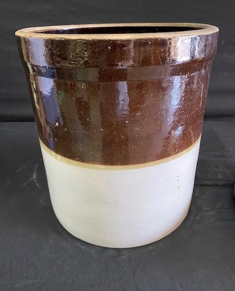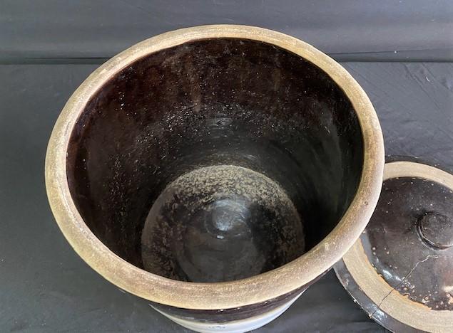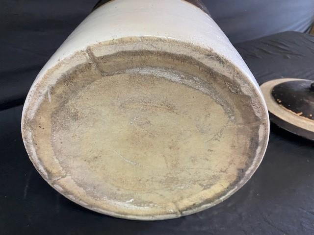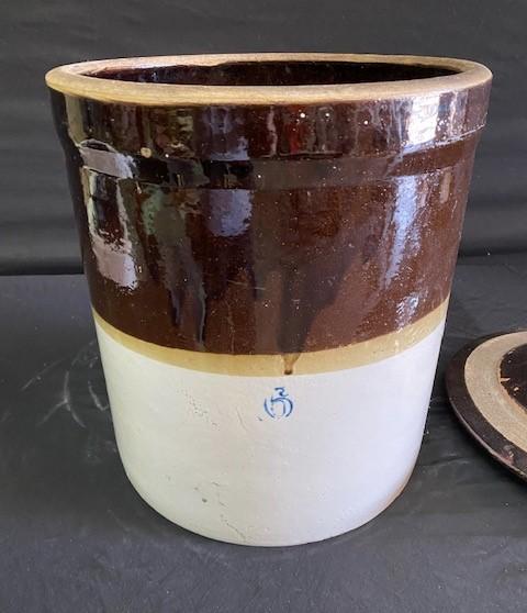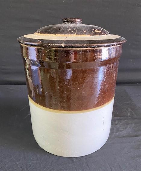 LOT#C152: #6 Two-Tone Primitive Farmhouse Crock w/ Lid