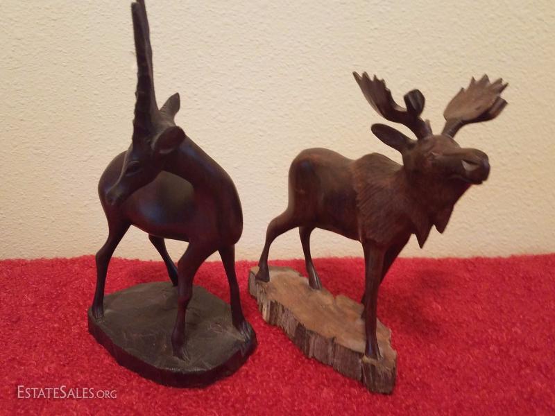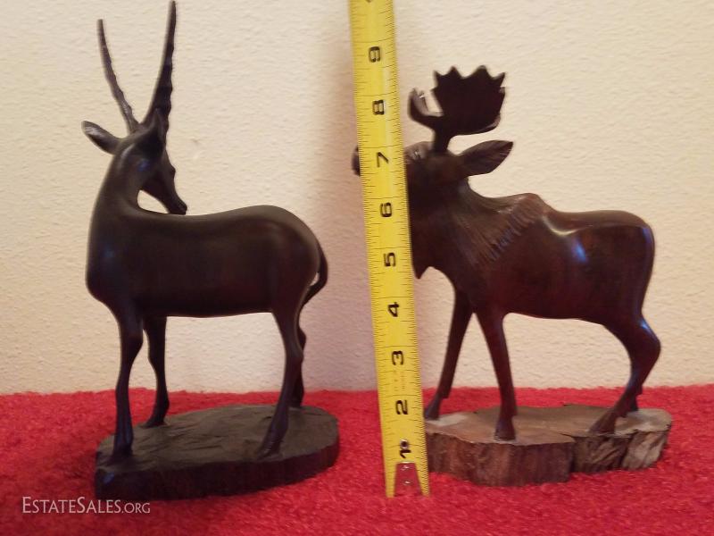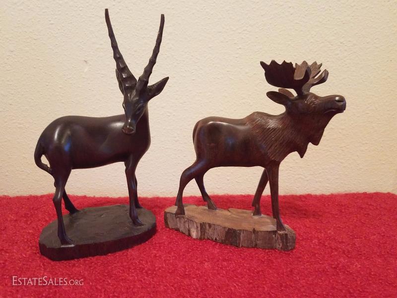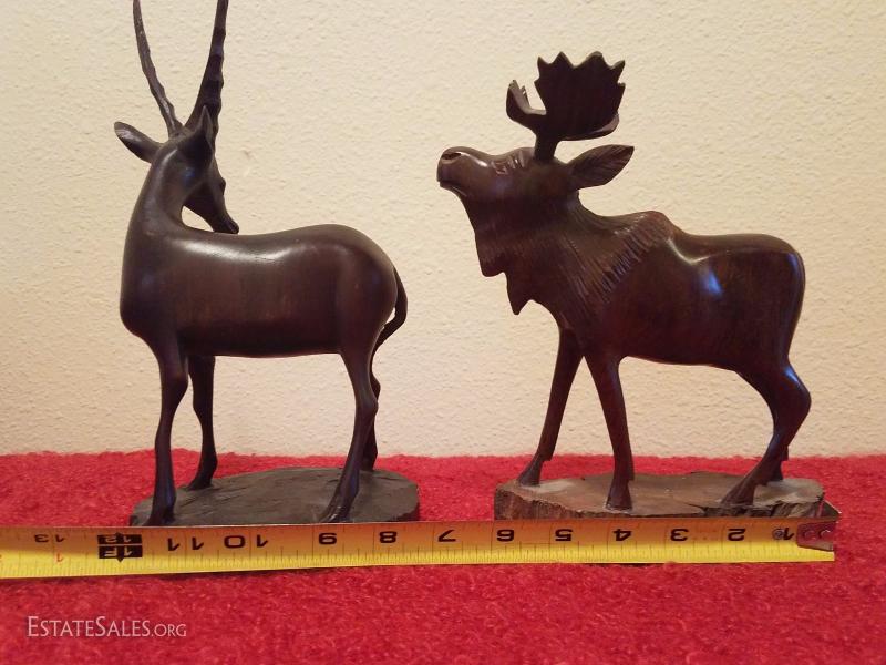 Lot-C16 2 Pc Carved Ironwood Figures Gazelle & Moose