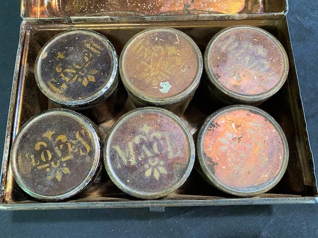 LOT#C192: Vintage Spice Polychrome Metal Box