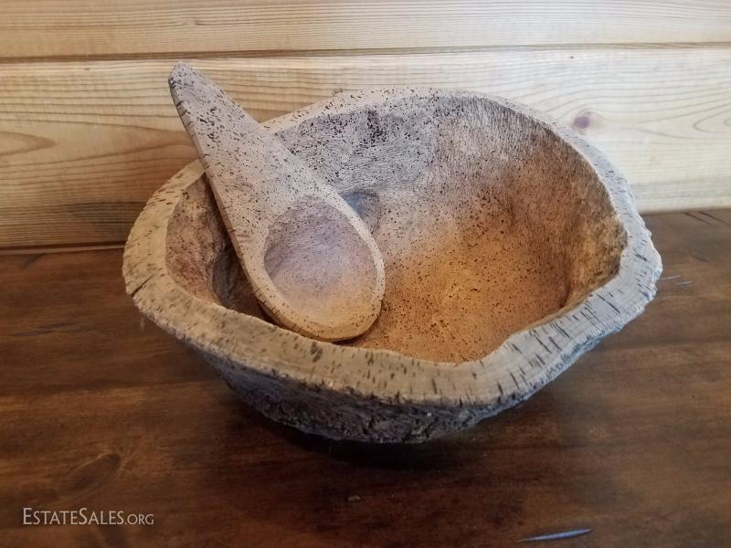 Lot-C20 2 Pc Decorative Primitive Cork Grinding Bowl