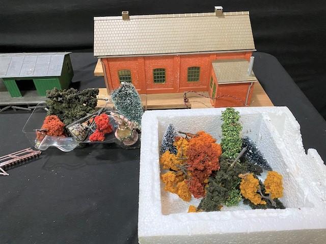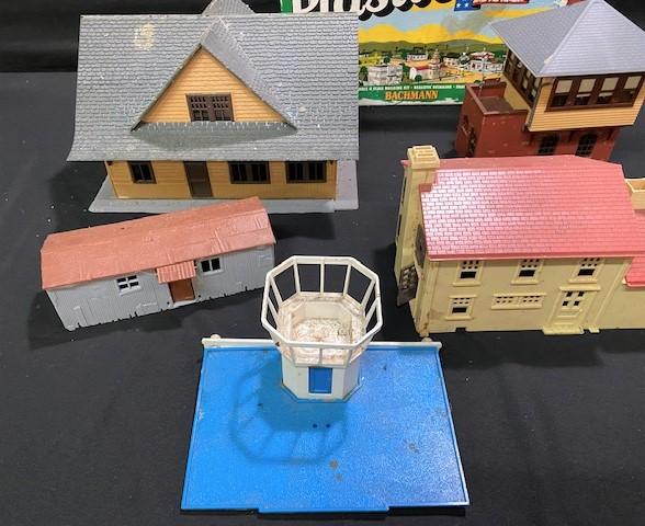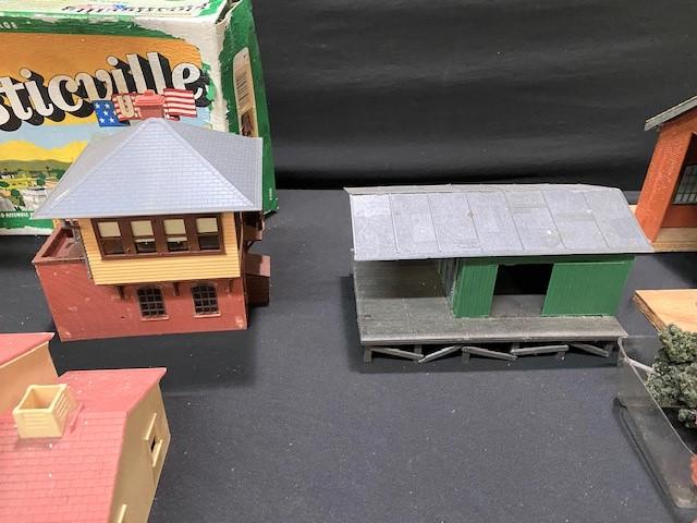 Includes: houses, stations & more. Estimated weight of lot: 8lbs. Measurement: 22" x 24" x 18" (largest item)